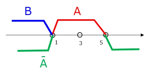 x∈Bならば∈Aバーは真だが、x∈Aバーならば∈Bは偽であるため、十分条件であるが、必要条件ではない。