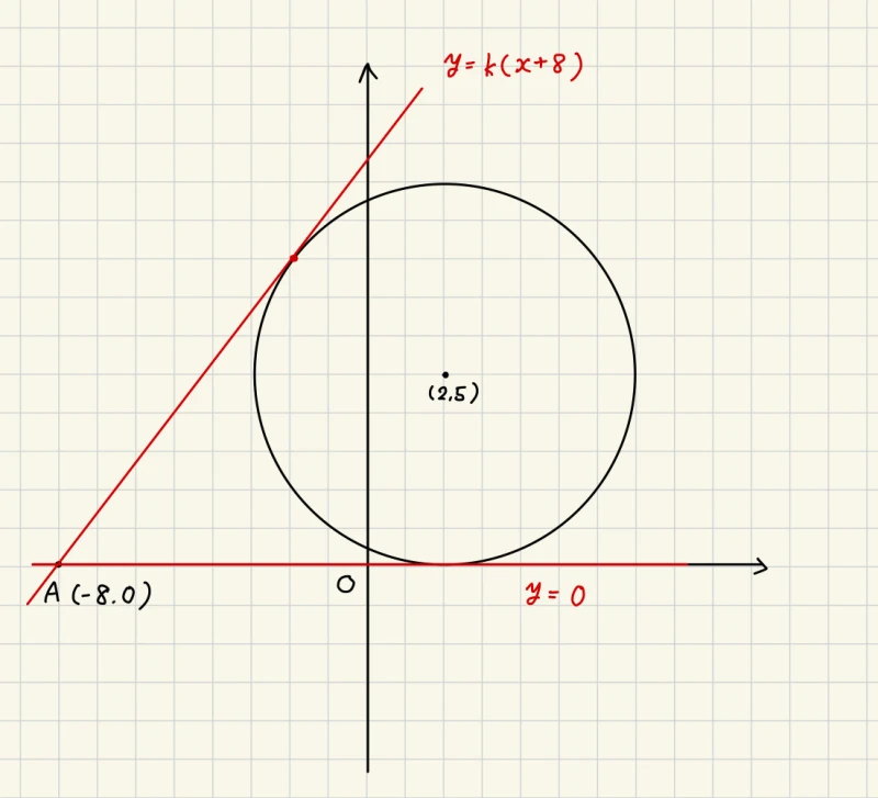 太郎:直線lの方程式はy=k(x+8)と表すことができるから、