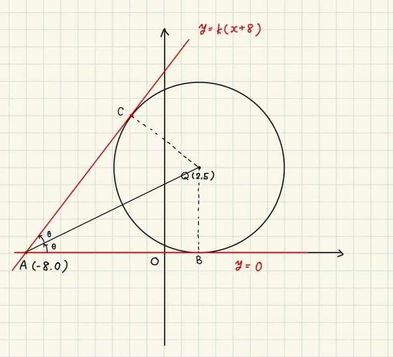 太郎:直線lの方程式はy=k(x+8)と表すことができるから、