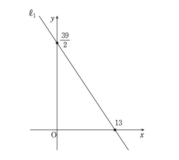 よって直線 l1は、2点(13,0)と(0,39/2)を通る、以下のような直線になります。