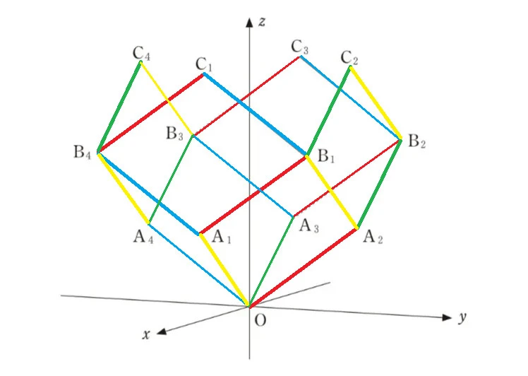 A1(1,0,a)、A2(0,1,a)、A3(−1,0,a)、A4(0,−1,a)がある。また、次の図のように、4点B1、B2、B3、B4を四角形A1OA2B1、A2OA3B2、A3OA4B3、A4OA1B4がそれぞれひし形になるようにとる。さらに、4点C1、C2、C3、C4を四角形A1B1C1B4、A2B2C2B1、A3B3C3B2、A4B4C4B3がそれぞれひし形になるようにとる。