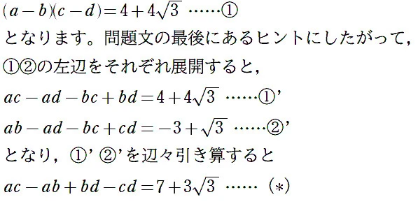 (a−d)(c−b)=( ケ )+( コ )√3 ・・・・・③
