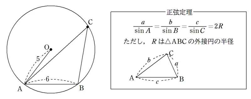 ΔABC の外接円の半径 R=5,AB=6 であるから,