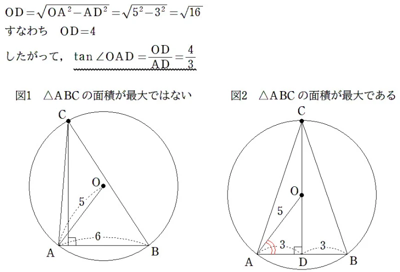 ΔABCの面積が最大となる点 C の位置や,OD の長さについては,
