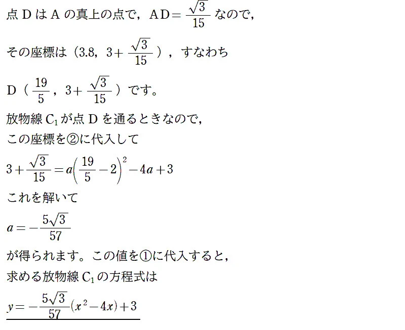 よって、放物線C1がDを通るとき、C1の方程式は