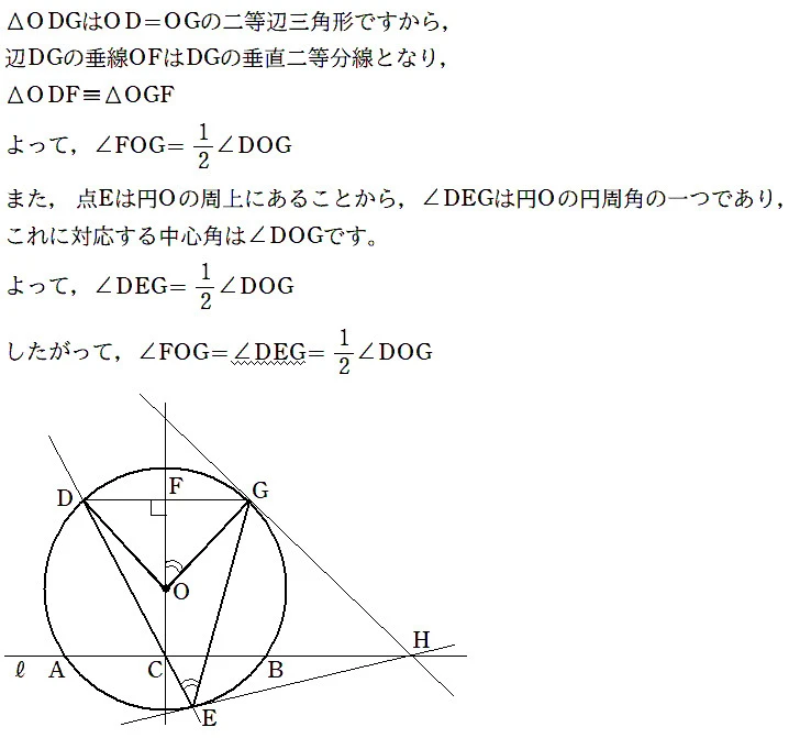 ∠FOG=1/2∠DOG=∠DEGとなります。
