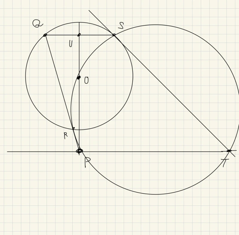 前の問題(問47)で,点RはΔPSTの外接円上にあり,その外接円は線分OTを直径とする円であることを示しました。