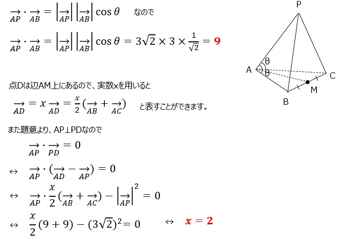 t(AM・AP) = 18 ⇒ t×9 = 18 ⇒ t = 2
