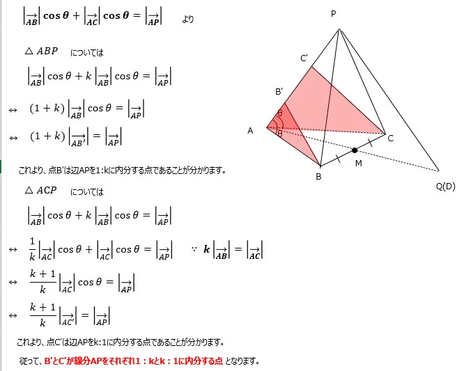 - B′とC′が線分APをそれぞれ(k+1):1と1:(k+1)に内分する点