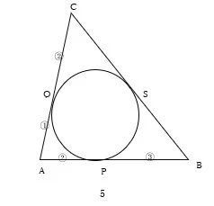 AB=5とし、△ABCの内接円が辺AB、辺ACとそれぞれ点P、点Qで接しているとする。AQ=( ウ )であることに注意すると、BC=( エ )であり、( オ )であることがわかる。