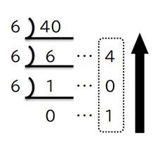 今回は10進数の40を6進数に変換します。