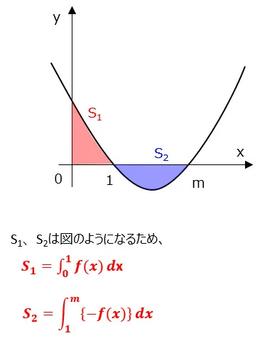となります。よってS2は[1,m]上での-f(x)の積分値です。