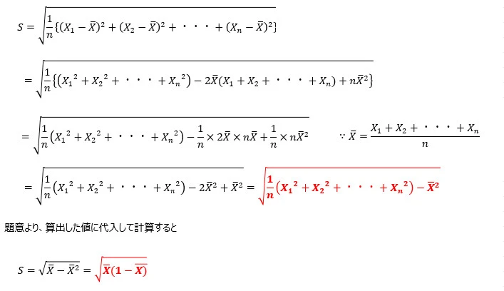 晴れの場合は1、晴れ以外の場合は0の値をとる確率変数をXと定義する。また、X=1である確率をpとすると、その確率分布は表1のようになる。