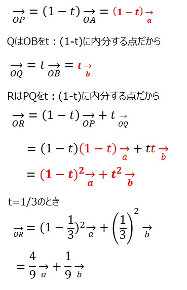 PはOAを(1-t):tに内分する点だから