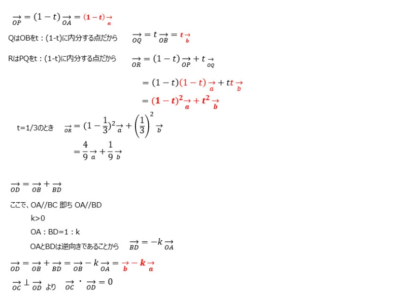 平面上に3点O、A、Bがある。ただし、O、A、Bは同一直線上にはないとする。