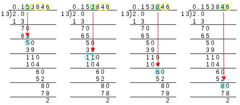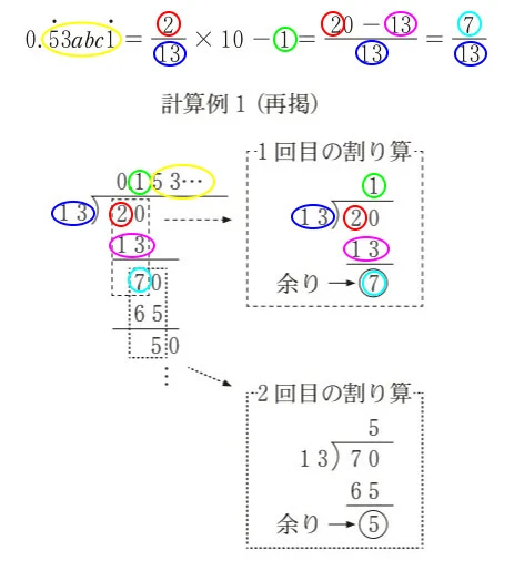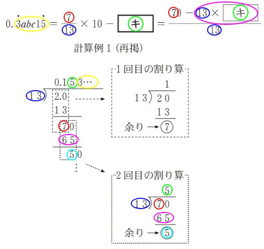 問題になっている四つの循環小数の対応関係は以下のようになります。