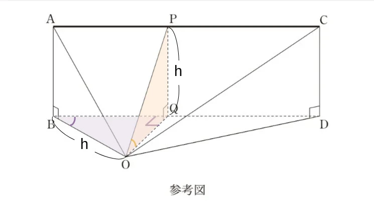 飛行機Pが点Aから点Cまで線分AC上を飛ぶ間における、飛行機Pを見上げる角∠POQの大きさについて考察しよう。